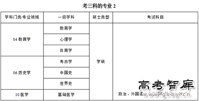 考三科的专业主要集中在教育学、历史学和医学学科门类下的各专业领域。除了要参加政治、外国语两门公共课外,只需要考一门300分满分的专业基础综合课程。