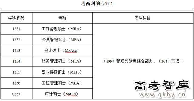 参加(199)管理类联考的七个专业硕士,初试只考两门课,管理类联考综合能力(满分为200分),英语二(满分为100分),初试总分为300分。