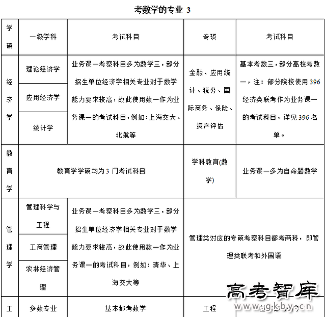 那么在细化一下,根据目标专业的不同,业务课一考试的差别,也就是所谓的考数学还是不考数学的问题。