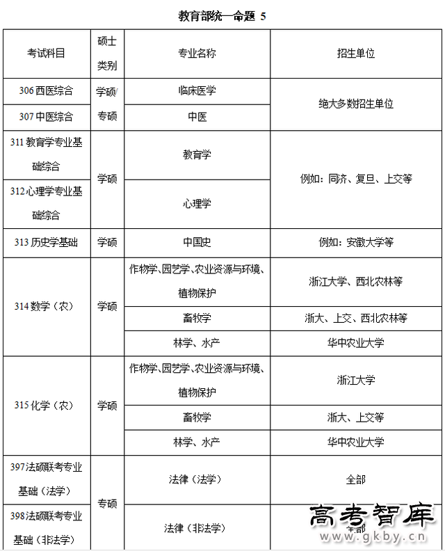 例如:农学学硕下面的一级学科,部分院校考自命题数学(农),例如中国农业大学;部分院校不考数学,考315化学(农),例如吉林大学;农学专硕,包括农业、风景园林、兽医、林业基本上不考数学。